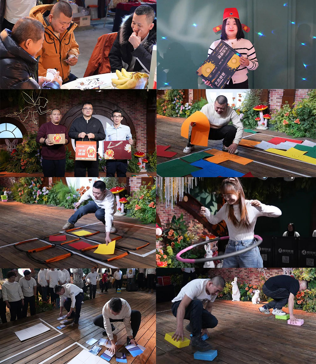 华灯璀璨,联欢家宴在激情四射的《T台秀》开场舞中热烈启幕。精彩纷呈的环节轮番上演:两轮“屏幕互动抽奖”惊喜不断;趣味游戏“一马当先”、“诸葛吃糖”、“大裤子接球”、“蒙眼敲锣”引爆欢声笑语;诙谐幽默的原创“三句半”道出工作日常,引发深深共鸣;歌曲《这世界那么多人》、《如愿》、《我只在乎你》、《男人花》及《快乐崇拜》唱响心声,余音绕梁;舞蹈《超级冠 军》、小品《没毛病》、特色节目《阁韵新闻晚播报》各展风采,尽显才华。温馨的“生日会&周年会”环节,为特别的时刻送上集体的祝福。穿插其中的大奖抽取,更让幸运与欢乐交织。盛宴尾声,全体同仁齐声高唱《明天会更好》,用嘹亮歌声许下对未来的坚定信念与美好期许。